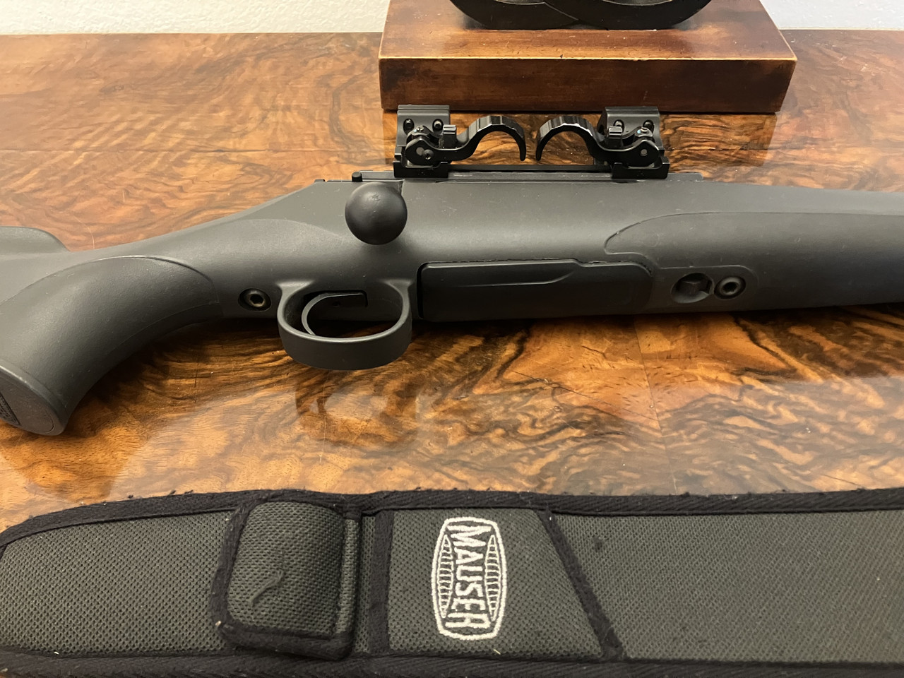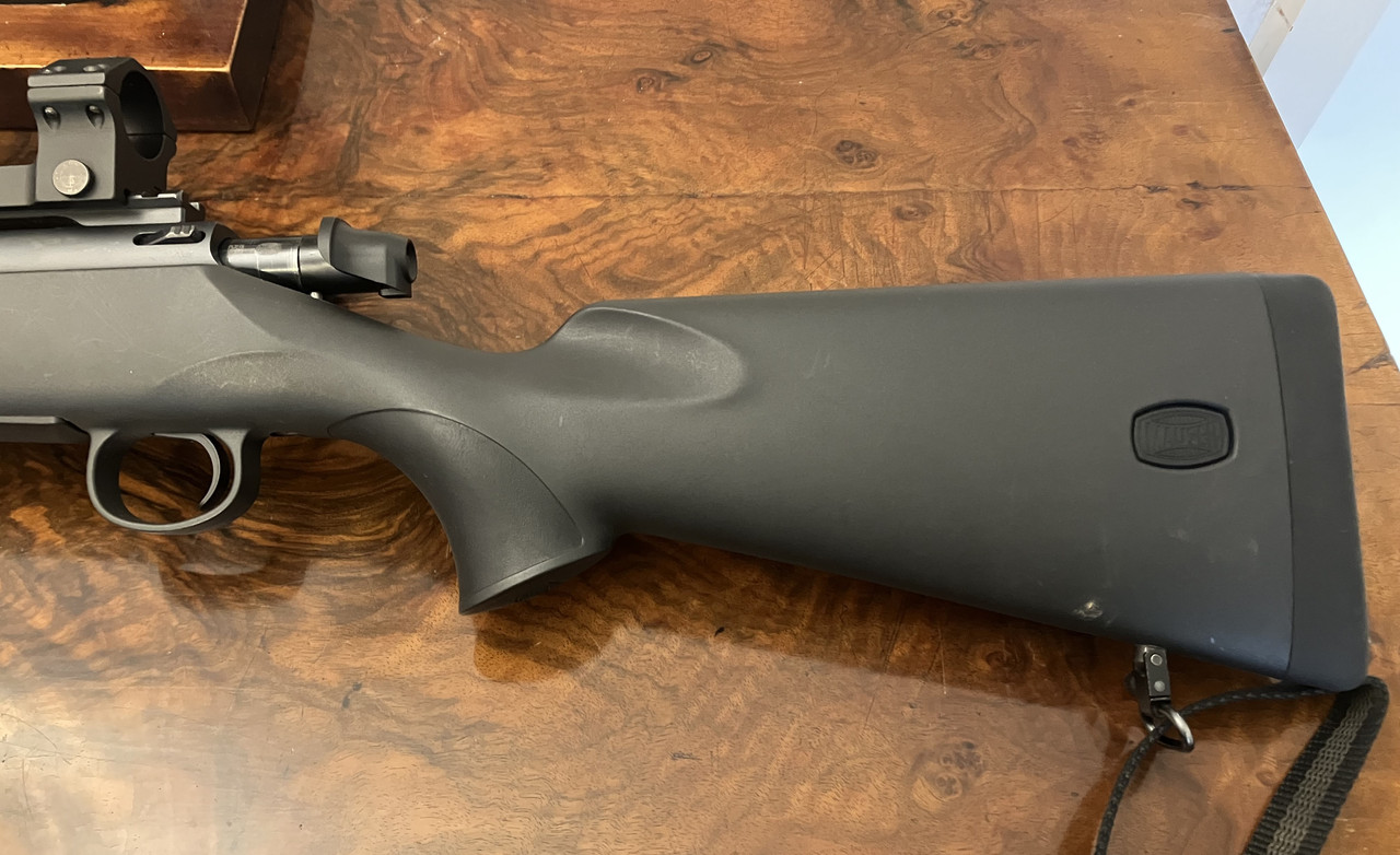 Versteigert wird die abgebildete Allwetter-Repetierbüchse von Mauser aus Erstbesitz. Die Waffe ist voll funktionsfähig und weist einen gepflegten Lauf auf. Ein Mauser Gewehrriemen ist auch installiert. Bei dem Schalldämpfer handelt es sich um ein Model SOB3D von ERA TEC, der sich an das Gewinde M15X1 des Laufs fügen lässt. Die robuste Schnellspannmontage ist ebenfalls von ERA-TEC und kompatibel für alle Zielfernrohre mit 30mm-Mittelrohrdurchmesser ohne Schiene. Problemlos kann somit fasst jedes Zielfernrohr ohne Büchsenmacher montiert werden : - )