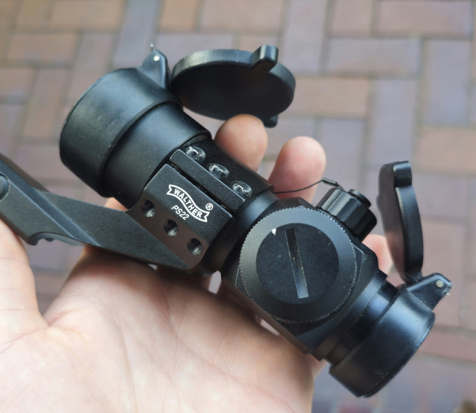 Rotpunktvisier von Walther mit 11x stufenverstellbarer Helligkeit, aufklappbaren Staubdeckel vorne & hinten sowie abnehmbaren Montagefuß ist für Waffen mit Weaverschiene geeignet (zusätzlich ein 11mm Schienenadapter bei für Luftgewehre). Rohrdurchmesser 30mm, Leuchtpunktgröße 5MOA. Länge: 125mm, Gewicht: 275g. Heutzutage nicht mehr neuwertig erhältlich. Der Zustand ist sehr sehr gut, wurde nur wenige Male benutzt. Die Optik ohne Mängel. Funktional aber keine Batterie enthalten. Neupreis damals 140€. Banküberweisung wird akzeptiert.