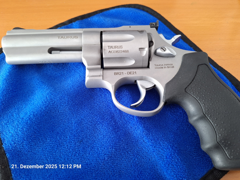 Sie bieten auf einen neuwertigen Revolver 4 Zoll der Marke Taurus im Kaliber .44 Magnum, ideal für den Schiess Stand oder als Jagdwaffe für den Fangschuss bei der Drückjagd.