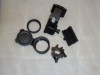 Hier biete ich fünf Zielfernrohrmontageteile an, von welchen ich leider nicht mehr weiß wofür sie einmal gedacht waren.