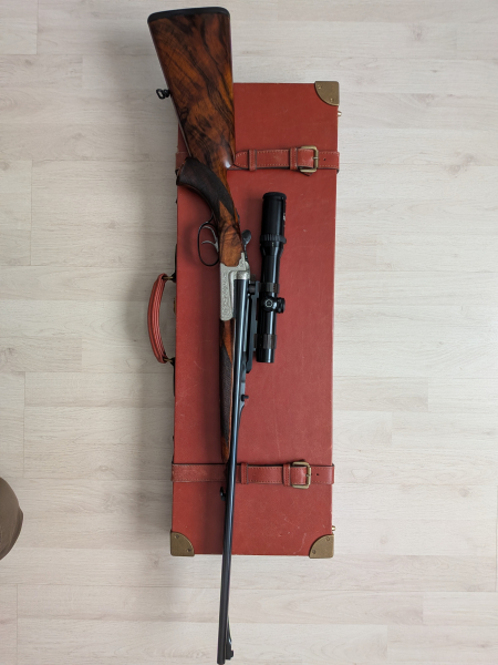 Ich biete hier eine Doppelbüchse mit Zielfernrohr und Schwenkmontage im Kaliber 9, 3x74R im sehr guten Zustand an.