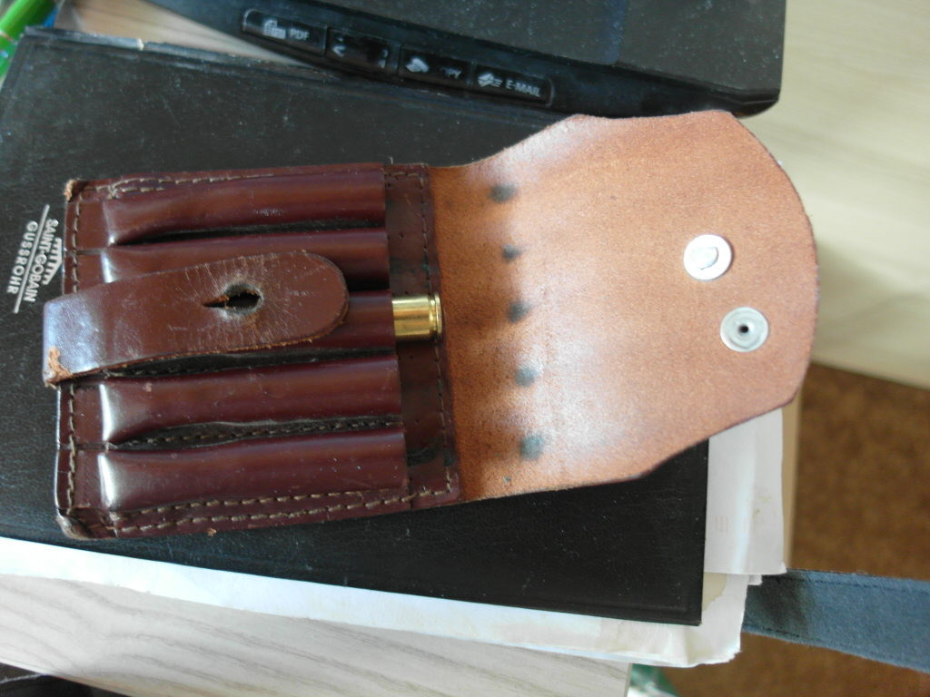 1 Patronenetui AKAH für 5 Patronen Leder mit einer Patrone wie oben