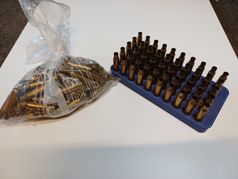 Verkaufe 126 Stück Lapua Hülsen. 50 sind bezündert mit CCI BR2 Zündern inkl abgebildetem Ladebrett.