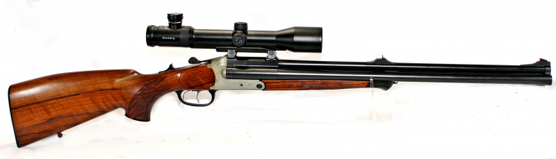 Der Blaser D99 eignet sich hervorragend für Pirsch, Ansitz und Bewegungsjagd. Dank des integrierten Doppelschloss-Systems steht Ihnen ein zweiter Schuss sofort zur Verfügung – ganz ohne erneutes Spannen. Die freiliegenden, spiegelblanke, 59cm lange Läufe aus Spezialstahl sorgen für eine gleichbleibende Treffpunktlage – auch bei schnellen Folgeschüssen. Ergänzt wird diese Präzision durch den extrem stabilen Kippblockverschluss, der für maximale Sicherheit und Haltbarkeit sorgt – selbst bei häufigem Gebrauch. Hochwertiger Nussbaumschaft mit Edelholzabschluss, Bayerischer Backe mit Doppelfalz und tief gestochene, schottische Fischhaut. Hochwertiges ZEISS VICTORY VARIOPOINT M - 1,5-6x42 mit Absehen 56 mit fein dimmbaren Leuchtpunkt auf BLASER Sattelmontage.