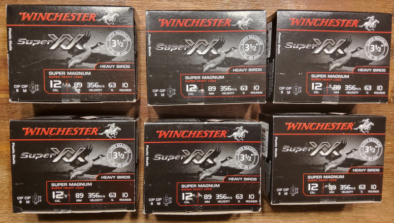 Versteigert werden 59 WinchesterSuper XX Magnum 12/89 3,5mm - 63g Schrotpatronen.