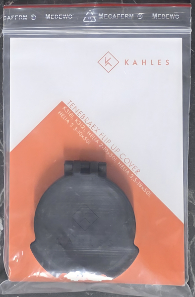 Verkauft wird ein unbenutztes Kahles Objektivschutz Flip Up Cover mit Adapter Ring.