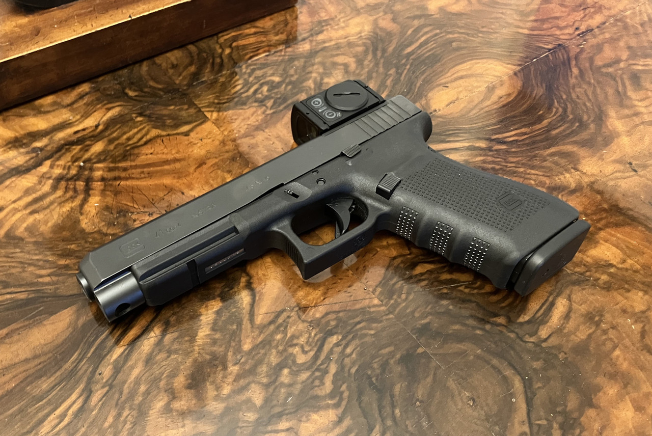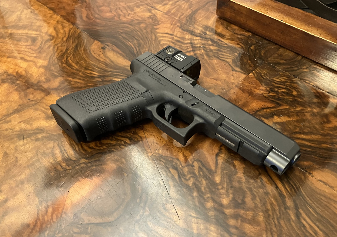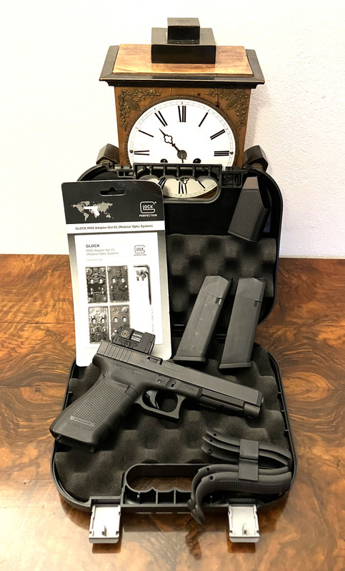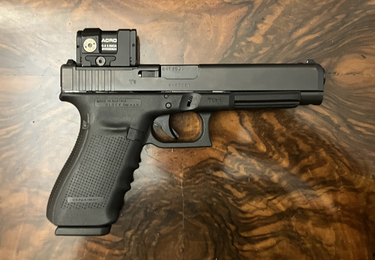 Versteigert wird die abgebildete Pistole Glock 41 in .45 ACP inklusive Rotpunkt-Visier Aimpoint ACRO C2 in Originalverpackung. Die Waffe befindet sich in einem gepflegten Zustand : - )