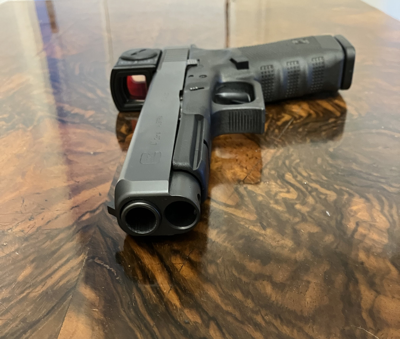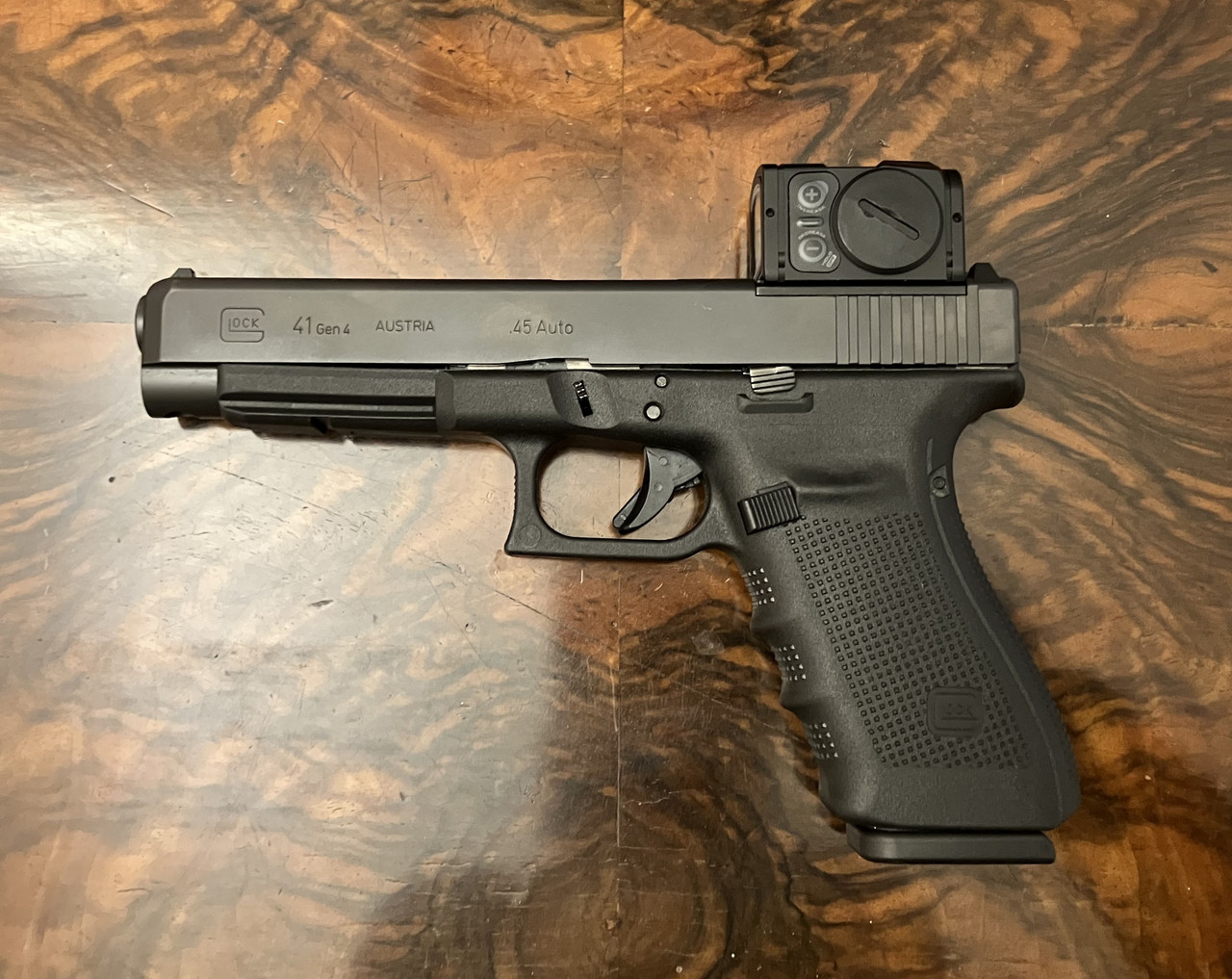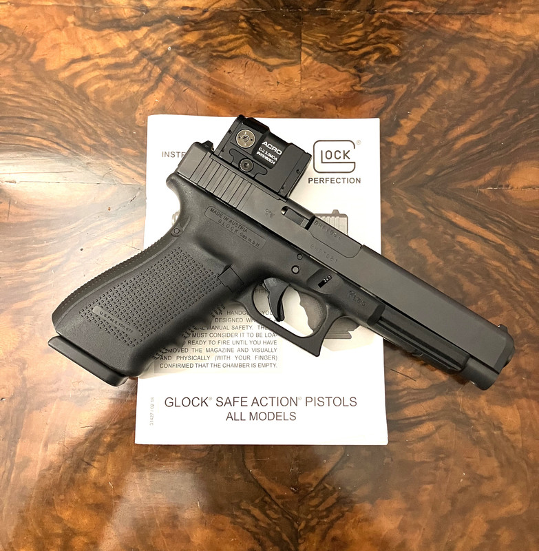 Versteigert wird die abgebildete Pistole Glock 41 in .45 ACP inklusive Rotpunkt-Visier Aimpoint ACRO C2 in Originalverpackung. Die Waffe befindet sich in einem gepflegten Zustand : - )