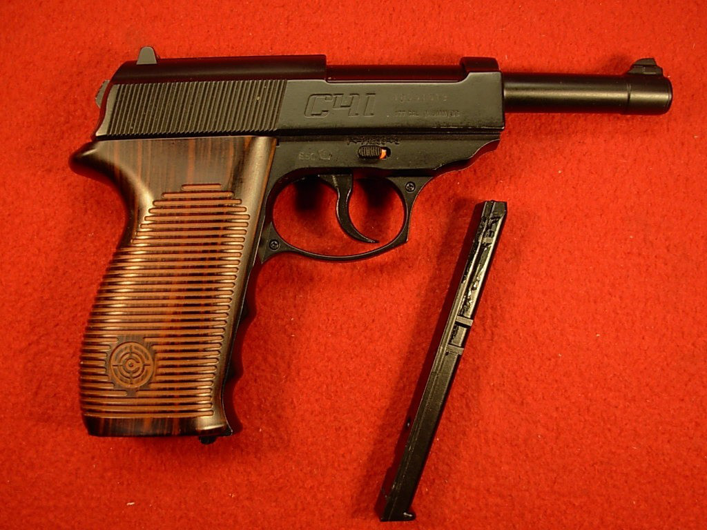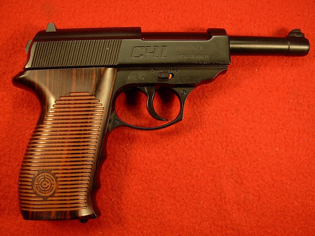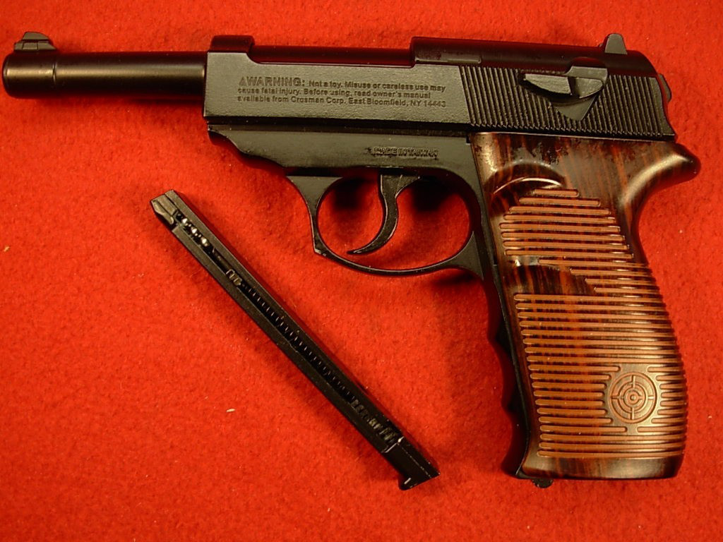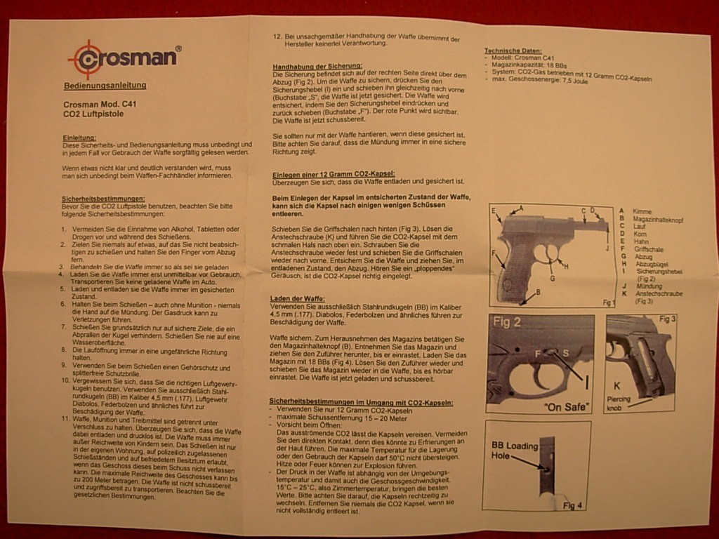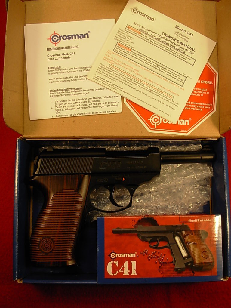 C41 – Crosman – Semi Automatic Air Pistol – Modell wie P38 – im Karton – CO2 – Metallmodell ––- Zustand siehe Bilder . Artikel stammt aus Sammlungsauflösung. Bei Fragen bitte Mail-