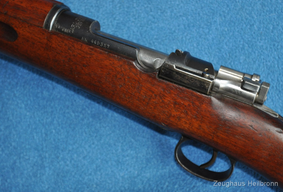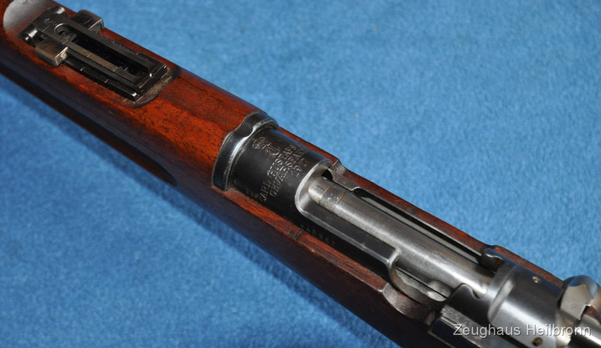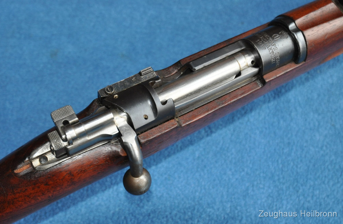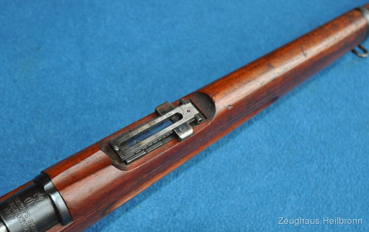 Waffe in einem schönen Zustand, siehe Bilder, Lauf blank, volle mechanische Funktion. Mit Bohrungen auf Hülsenbrücke zur Montage eines Diopters.