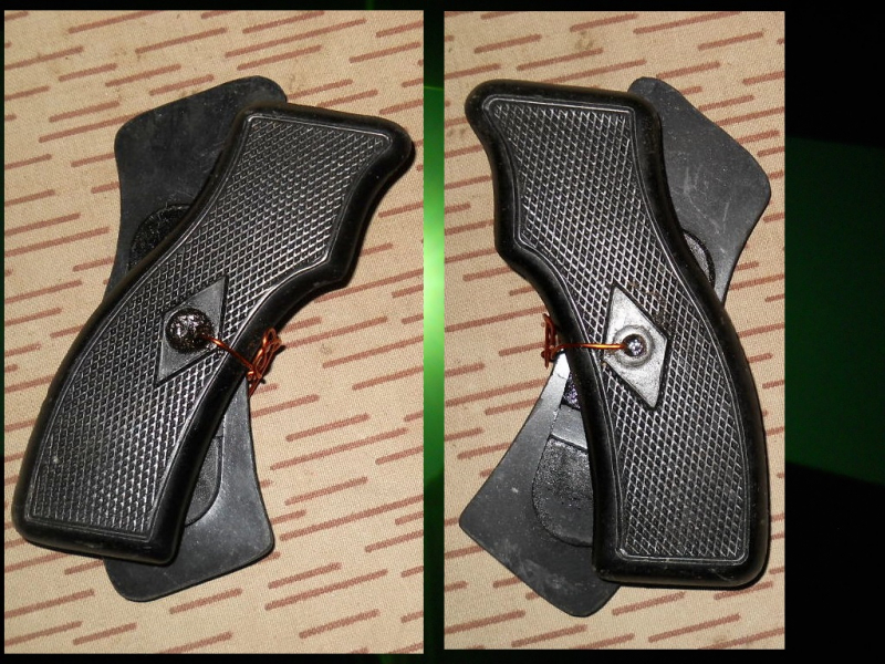 Beschreibung: ... orig. Griffschalenpaar ... für Ostblock Leuchtpistole SPSch ... unbenutzt mit minim. Lagerspuren
