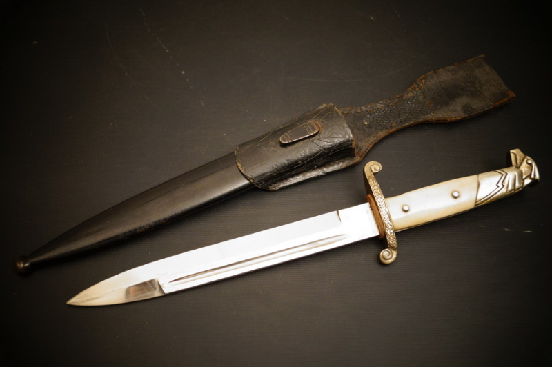 Fundzustand. Evtl. Musterstück. Sehr wenig in der Literatur - nur bei Johnson etwas zu finden. Klinge ist noch ca. zu 90% vernickelt und mit Hersteller Alcoso Solingen. Griffstück aus Neusilber und mit Horn oder Knochen-Griffschalen. Alunieten ohne Schäden. Sehr feiner und extrem seltenes Extra Seitengewehr für Begleitpersonal der Deutschen Diplomaten und Staatsbeamten. Evtl. Prototyp.