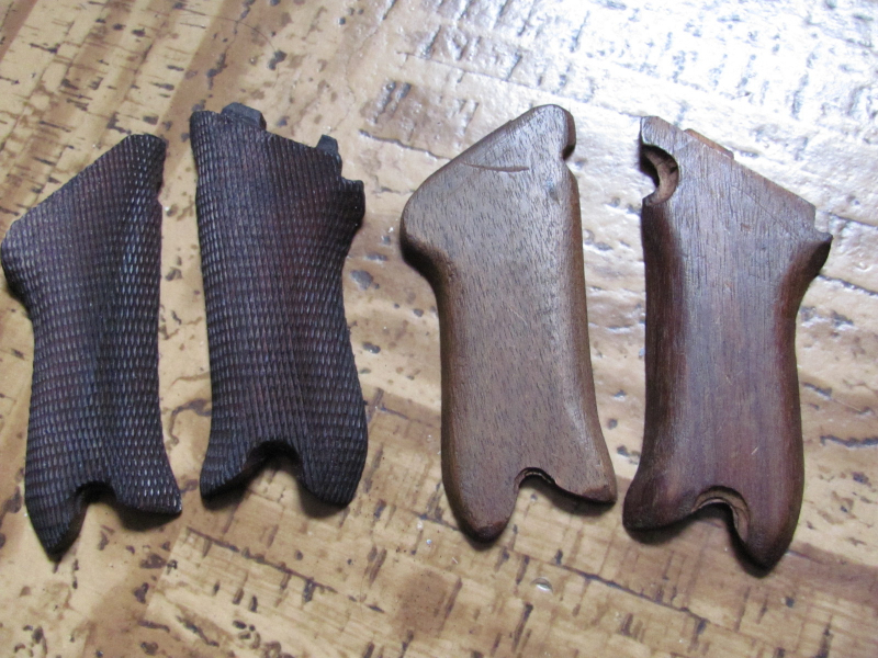 sie bieten auf zwei paar Griffschalen für die Pistole Luger 08. Über orginal oder nicht kann ich wenig sagen. Das eine Paar sieht mir sogar so aus, als hätte es mal einer selbst gemacht.