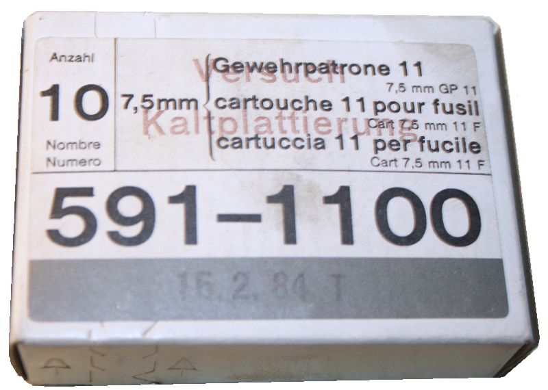 schweizer Päckchen Versuchspatronen 7,5 mm Gewehrpatronen 11.