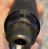 Auf dem Schalldämpfer ist auf dem M14 Gewinde ein Adapter für ein M13 Gewinde.