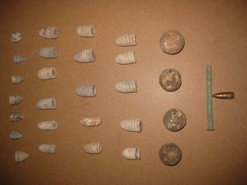 Außerdem ein paar Zink?- Kartätschen, ein antiker Kanonenzünder und ein Geschoss des STG44.