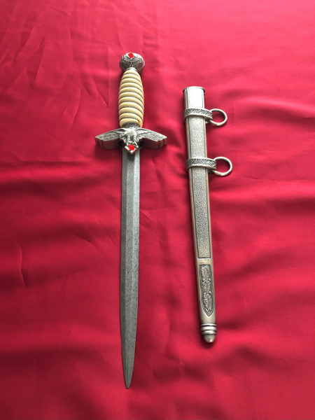 Auf der Parierstange ist ein Reichsadler mit Hakenkreuz versehen! Und am Griffkopf ist auch ein Hakenkreuz versehen.