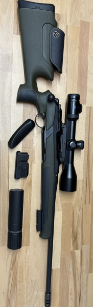 Biete meine Merkel Helix Speedster in .308 mit Merkel Schalldämpfer und Zeiss V8 2,8-20x56 mit ASV und Dentler Montage und Mündungsbremse. Am Vorderschaft ist eine Picatinnyschiene für ein Zweibein angebracht. Schussleistung liegt bei rund 200. Ein Koffer würde ich auch dazu geben. Neuwert ca 7.000 €.