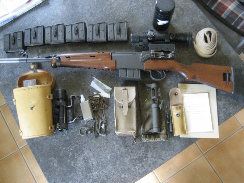 Absehen des Originalzielfernrohres wackelt und muss repariert werden. Ebenfalls fehlt eine Kappe für die Seiteneinstellung. Adapter und Prismenschiene ist vorhanden. Zur Originalausstattung fehlt das Bajonett und die Putzbürste für das Patronenlager. Dafür verfügt die Waffe über 7 Originalmagazine. Eine zusätzliche Feder an Schlagbolzen verhindert das "doppeln". Ausnehmungen am Vorderschaft verringern die Erhitzung des Laufes und wirken sich positiv auf die Schussleistung aus. Bei Bedarf können Ladedaten geliefert werden. Die Waffe wurde fabrikneu erworben, hat keinerlei Rost oder Beschädigungen und wurde nur wenig geschossen. Durch aufstellen des Granatwerfervisieres kann dieses Gewehr auch als Repetierer geschossen werden (nur mit Zielfernrohr).