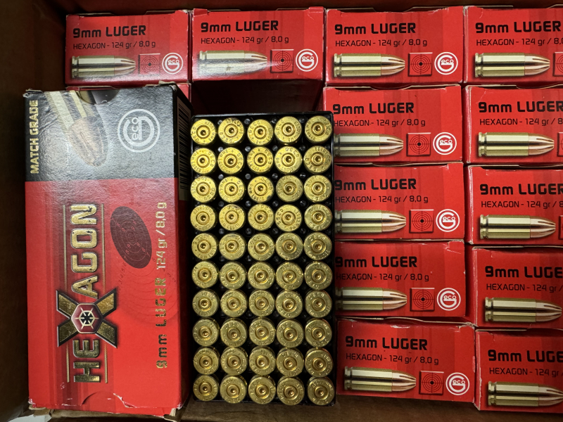 1992 Hülsen 9 mm Geco Hexagon. Einmal geschossen. Losrein. Nicht gewaschen, nicht entzündert. In Originalschachteln. Privatverkauf. Keine Gewährleistung. Keine Rücknahme.