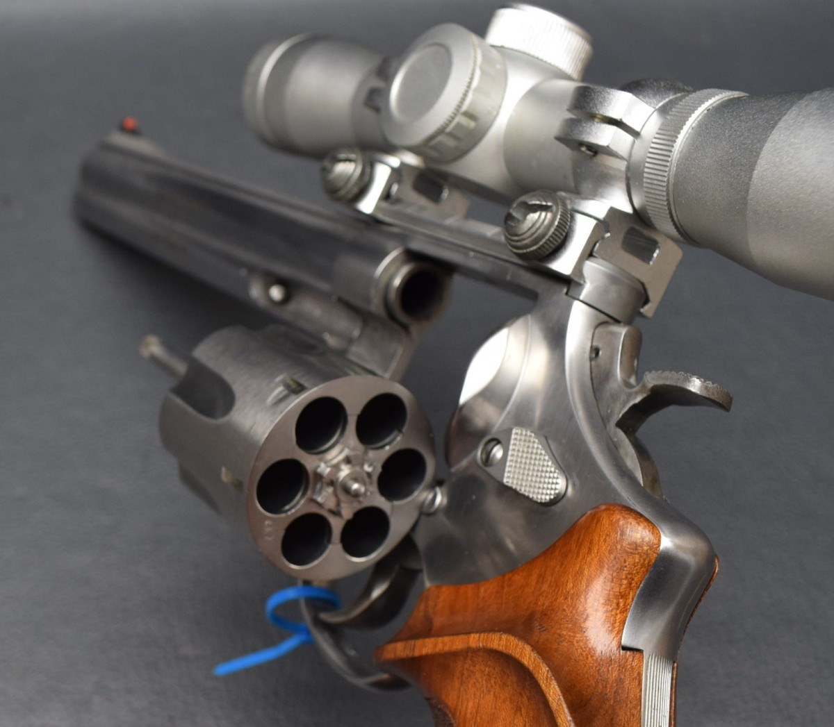 8,2" Lauf, Weaver Schiene, Korn mit roter Einlage verstiftet, SA/DA Abzugssystem, N-Rahmen, 6-Schuss Trommel, sehr bequemer Holzgriff mit Fingerrillen und Daumenauflage.