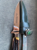 Universal-Jagd-Nicker mit ausklappbaren Zusatzklingen „ HUBERTUS Solingen“, feststehende Klinge mit 11,5 cm Schneide & ausklappbarer Säge (6,5 cm) inkl. Kapselheber, Aufbruchklinge (7,5 cm), Korkenzieher und Lederscheide: Sehr guter Zustand