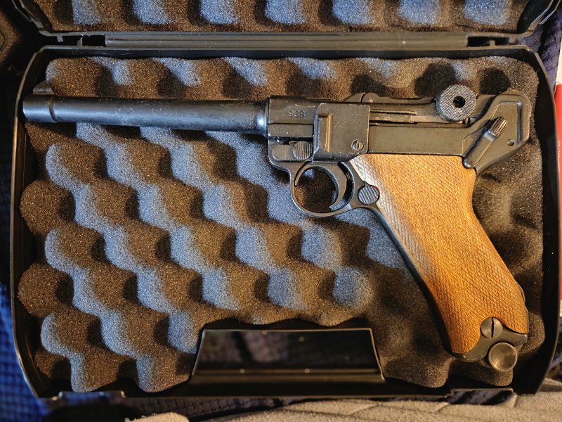 Dekowaffe mit mechanischen Funktionen. Mit Koffer, entnehmbar es Magazin