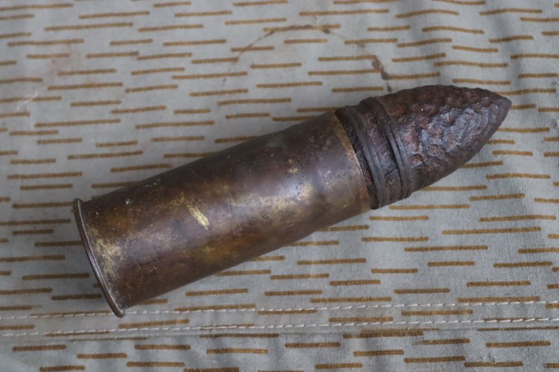 Französische 3,7cm Messinghülse mit Panzergranate. aus dem 1.WK