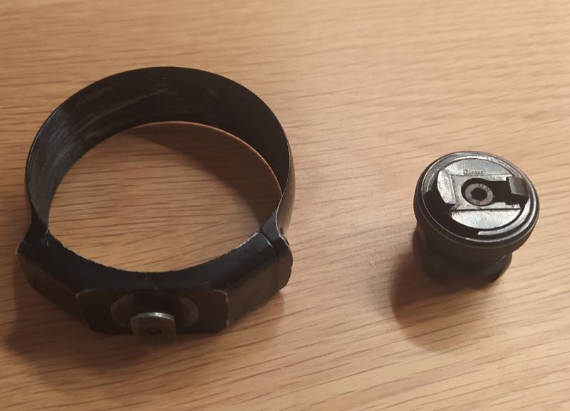 Angeboten werden die Oberteile einer Schwenkmontage für ein Zielfernrohr mit 70° Außenschiene. Montiert war hiermit ein Zeiss Diatal Z 8x56. Auf dem hinteren Fuß ist der Schriftzug Blaser zu sehen. Der vordere Ring hat eine Bauhöhe von ca. 4,5mm und einen Innendurchmesser von ca 60mm. Der Pivotzapfen ist ca 13mm x 8,5mm. Der hintere Fuß hat eine Bauhöhe von ca 17mm und ist mit einem Drehverschluß für eine Schienenbreite von ca 14,5mm versehen. Die Montageteile sind gebraucht und weisen Gebrauchsspuren auf, siehe Bilder. Die Schrauben und die Gewinde sind alle in Ordnung. Bei Fragen bitte kurz melden ! Privatverkauf! Versandkosten außerhalb Deutschlands bitte anfragen!