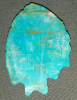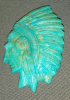 Original Türkis Stein eines Indianer Kopfs mit Feder Schmuck, handgefertigt, ca. Größe 5,5 x 3,5 x 0,5 cm HBT, ca. 22 Gramm schwer, mit alters - und gebrauchsbedingten Spuren, Haarrisse vorhanden aber noch eine feste Substanz.