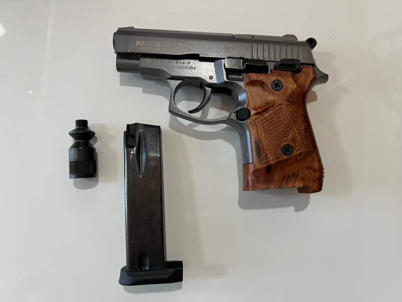 Zoraki 914-P 9mm P.A.K. in Titan mit Holzgriff-Optik und Sicherung, PTB 1070.