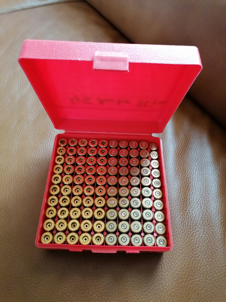 100 Stück 45 Auto Rim Hülsen von Remington. Davon 50 Stück neu und 50 Stück mit abgeschlagenen Zündhütchen im Case-Gard P100. Versand Deutschland um die 12€. Der Verkauf erfolgt unter Ausschluss jeglicher Gewährleistung.