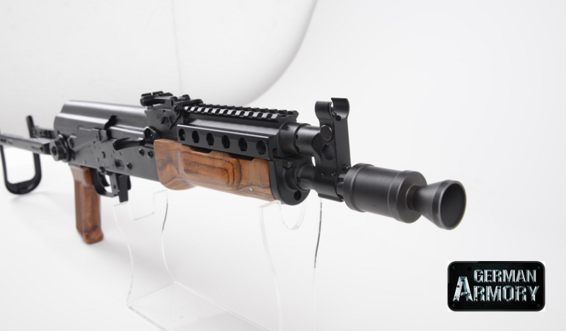 Erfordert keinerlei Änderungen an der Waffe selbst und ist jederzeit wieder abnehmbar. In das Rohr ist innen eine Führung gefräst, um die Pistonvibrationen zu minimieren. Die gesamte Konstruktion ist aus einem Teil Aluminium gefräst.