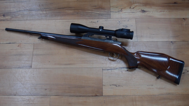 Sie bieten auf eine sehr schöne Repetierbüchse Sauer & Sohn Modell 90 Luxus im Kaliber .30-06Spring. Die Büchse wurde 2006 beschossen und befindet sich in einem sehr guten Zustand. Der Lauf ist 50cm lang, von außen und innen wie neu, hat ein Mündungsgewinde M14x1 mit Abdeckkappe, 2 Bohrungen von der offenen Visierung (sind mit Kit geschlossen) und zwei Bohrungen Höhe Riemenbügel (hier war wohl mal die Riemenbügelaufnahme als Stutzen vorgesehen, eine Bohrung ist am Ende des Schafts zu erkennen). Der Schaft misst 36,5cm (Abzug bis Mitte Kappe) und hat kaum Gebrauchsspuren. Das System ist sehr schön mit Sauen graviert und trägt einen Kombiabzug (Flintenabzug mit Rückstecher). Das gravierte Einsteckmagazin fasst 3 Patronen. Die Büchse ist montiert mittels EAW Schwenkmontage mit einem neuen Swarovski Z6i 2-12x50 SR (4A-I). Sie ist 106cm lang bei einem Gewicht von 4,7kg incl. ZF und 3,9kg ohne ZF. Viel Erfolg beim Bieten! ***Wir wünschen Ihnen schöne Weihnachten und alles Gute, viel Glück, Gesundheit und Waidmannsheil für 2026!*** Jagd Lübbers, info@jagdluebbers.de