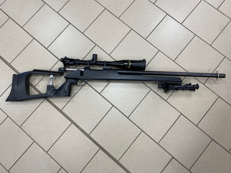 Sako M591 im Kaliber .308 Win, Gesamtlänge 110 cm, Schaftlänge 35 cm, Lauflänge ca 60 cm, Laufdicke 22 mm, Harris Zweibein montiert in der UIT Schiene am Vorderschaft, Zielfernrohr Leupold Vari X III 6,5 x 20, Schaftkappe und Schaftrücken sind verstellbar, Waffe hat normale Gebrauchsspuren und ist technisch in einwandfreiem Zustand.