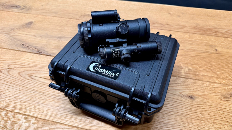 Zum Verkauf im Kundenauftrag steht ein hochwertiges Nachtsichtvorsatzgerät der Marke JSA Night-Lux, Typ NV MAU SR Gen 2+. Die Bildröhre liefert eine sehr gute Auflösung von 54 lp/mm in grün (Dipol DN37), kombiniert mit einem IR-LED Strahler 850nm, der auch bei völliger Dunkelheit eine klare Sicht ermöglicht.