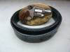 Alles orig. Röhmfertigung in sehr gutem Zustand. Revolver vernickelt cal. 6 mmPl. Gürtelschließe Metall mit mech. Befestigungsmöglichkeit des Revolvers. Gürtel aus festem Leder schwarz. Lochmaß min.:85 cm; max.: 97 cm. Sehr schöne kombination.