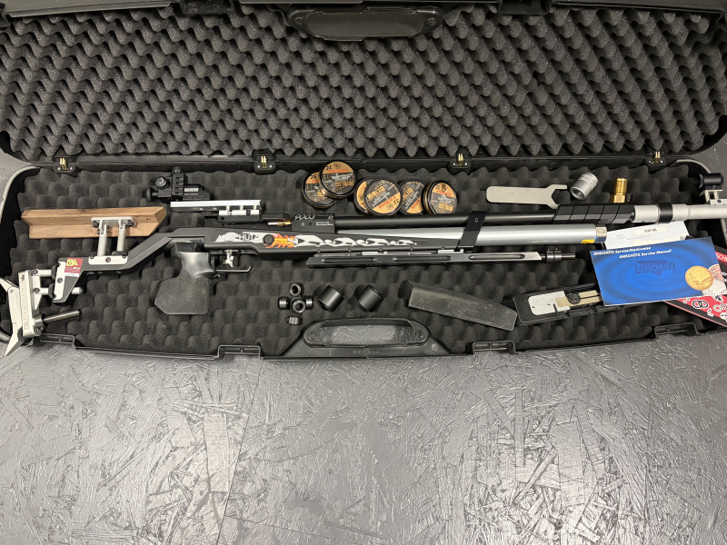 Verkaufe hier ein sehr gut erhaltenes und gepflegtes Luftgewehr von Anschütz. Modell 9003 S2 Premium, Griff Größe L. Es handelt sich um ein Hybrid Gewehr welches als Auflage (aktuell so gebaut) oder für das freistehende Schießen verwendet werden kann. Habe damit bereits mehrfach bei der Deutschen Meisterschaft geschossen. Das Gewehr wurde 2011 neu gekauft. Gewicht des Gewehrs beträgt 5.400 Gramm