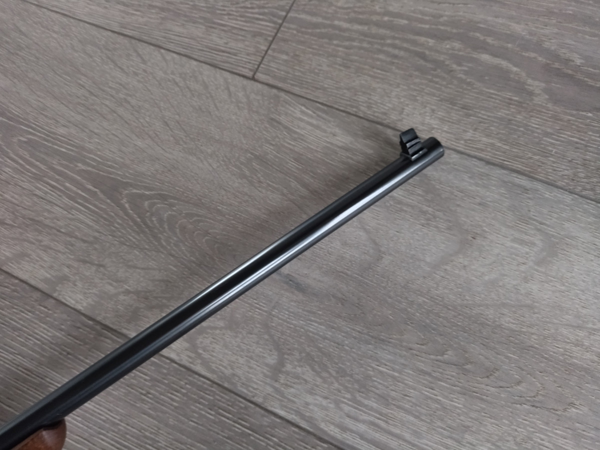 einwandfreie Schussleistung von 125 m/s, ladet und abschiesst ordentlich alle 8 Rundkugeln, mit sehr guter Präzision. Neue wunderschöne Brunierung, Schaft aus Buchenholz, versorgt mit dunkelem Schaftöl. Mehr Bildern gerne per Mail.