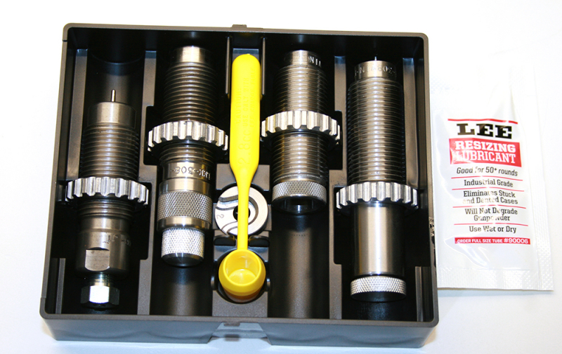 Das Set ist komplett, mit Hülsenhalter, Pulvermaß und den berühmten Lee-Ladedaten mit allen gängigen Pulvermarken, die in einem leicht lesbaren logischen Format angeordnet sind.
