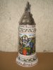 Großer alter, prächtiger Reservistenkrug mit Zinndeckel im Stil um 1900