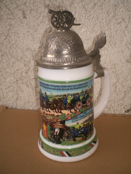 Großer alter, prächtiger Reservistenkrug mit Zinndeckel im Stil um 1900