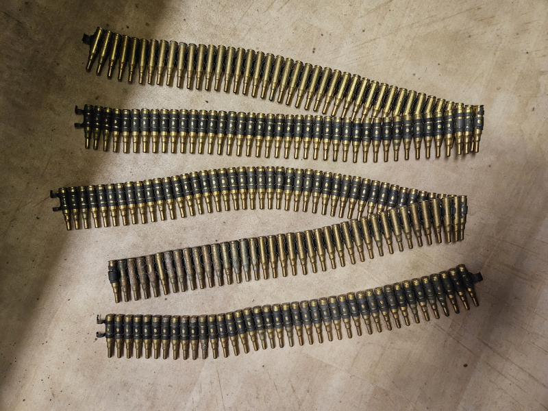 Verkaufe Zerfallsgurte mit Platzpatronen Kal. 7,62x51 / .308. Die Patronen sind alle entladen, aber die Zündhütchen noch aktiv, daher nur ab 18 Jahren. Altersnachweis erforderlich. Gewicht ca, 3.6 Kg. Patronen aus Messing, kein Kunststoff. Keine Garantie ud Rücknahme
