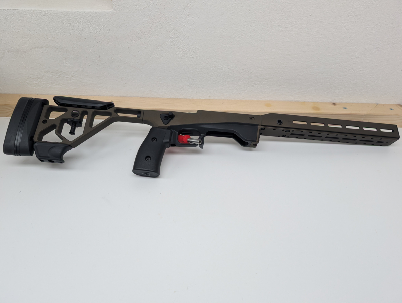 Das Chassis ist passend für T3x von der Superlite bis Supervarmint für die einreihigen Kunststoff Magazine. Des weiteren passt auch ohne Anpassung die T1x hinein, auch ohne extra Magazineinsatz von Tikka.
