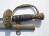 Griff und Handschutz aus Buntmetall, mit Anker, Tornister, gekreuzten Gewehren & US Eisenscheide mit 3 (!!!) beweglichen Tragringen. Lederumwickelter Griff