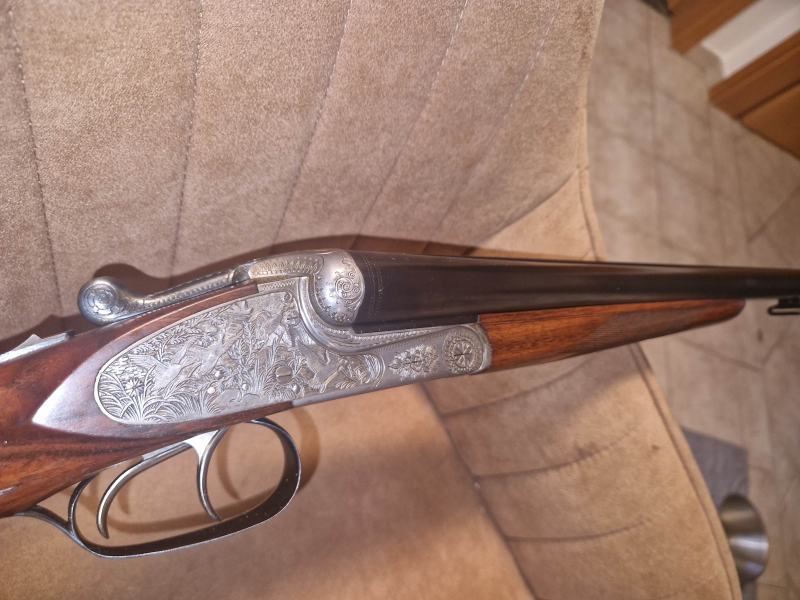 Sehr schöne fast neuwertige Seitenschlossflinte von Merkel. Es handelt sich um das Modell 147 S.