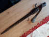 Verkaufe mir leider unbekanntes Bajonett mit Scheide u. orig. Koppelschuh und Trodell, eventuell Bayrisches Aushilfs Seitengewehr ursprünglich war ein Deutsches Koppel mit Schloß "Meine E. heißt T." dazu. Habe 20 Jahre gesucht und kein gleiches gefunden