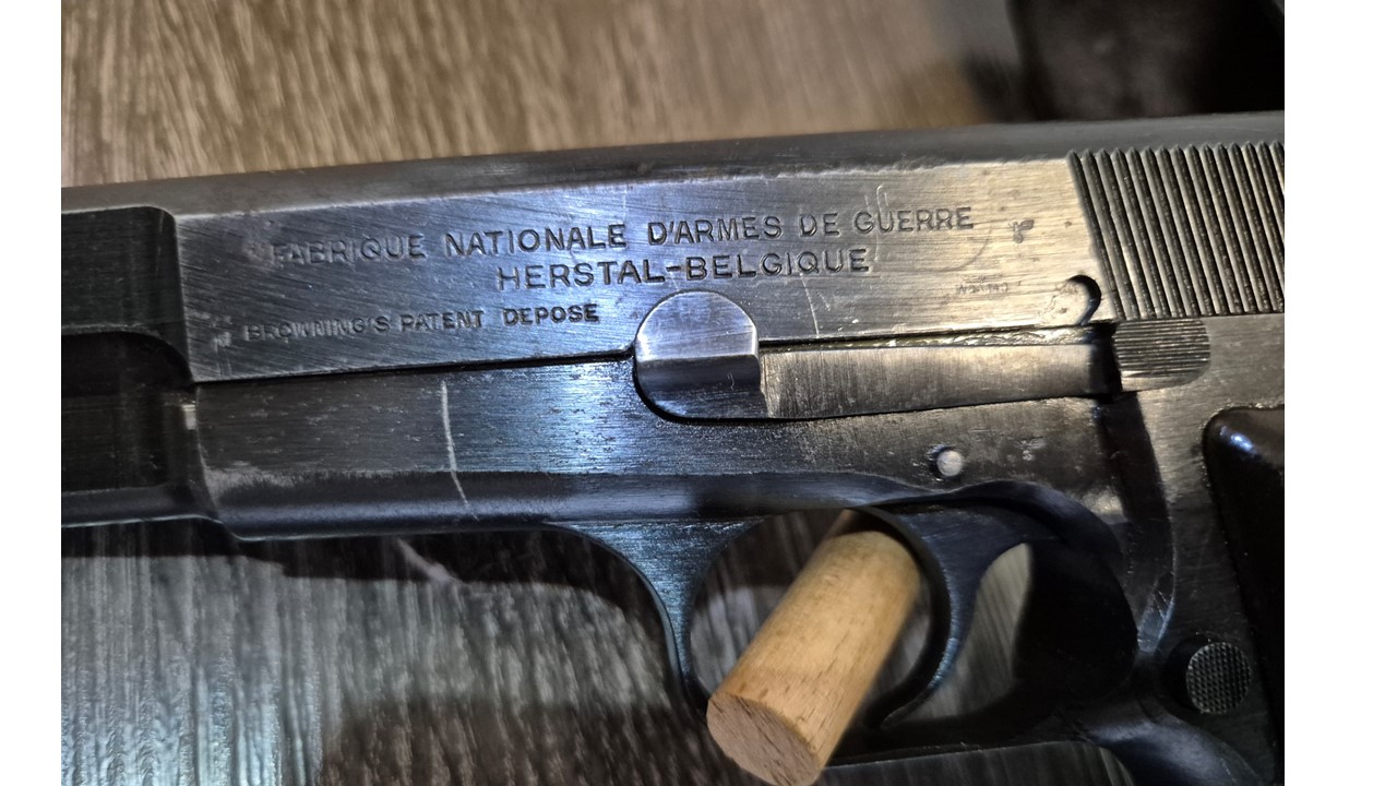 ich biete heute aus meiner Sammlung eine tolle FN High Power im Kaliber 9mm aus dem WK2 an. Zu der Waffe gibt es ein zeitgenössisches und authentisches Leder-Holster.