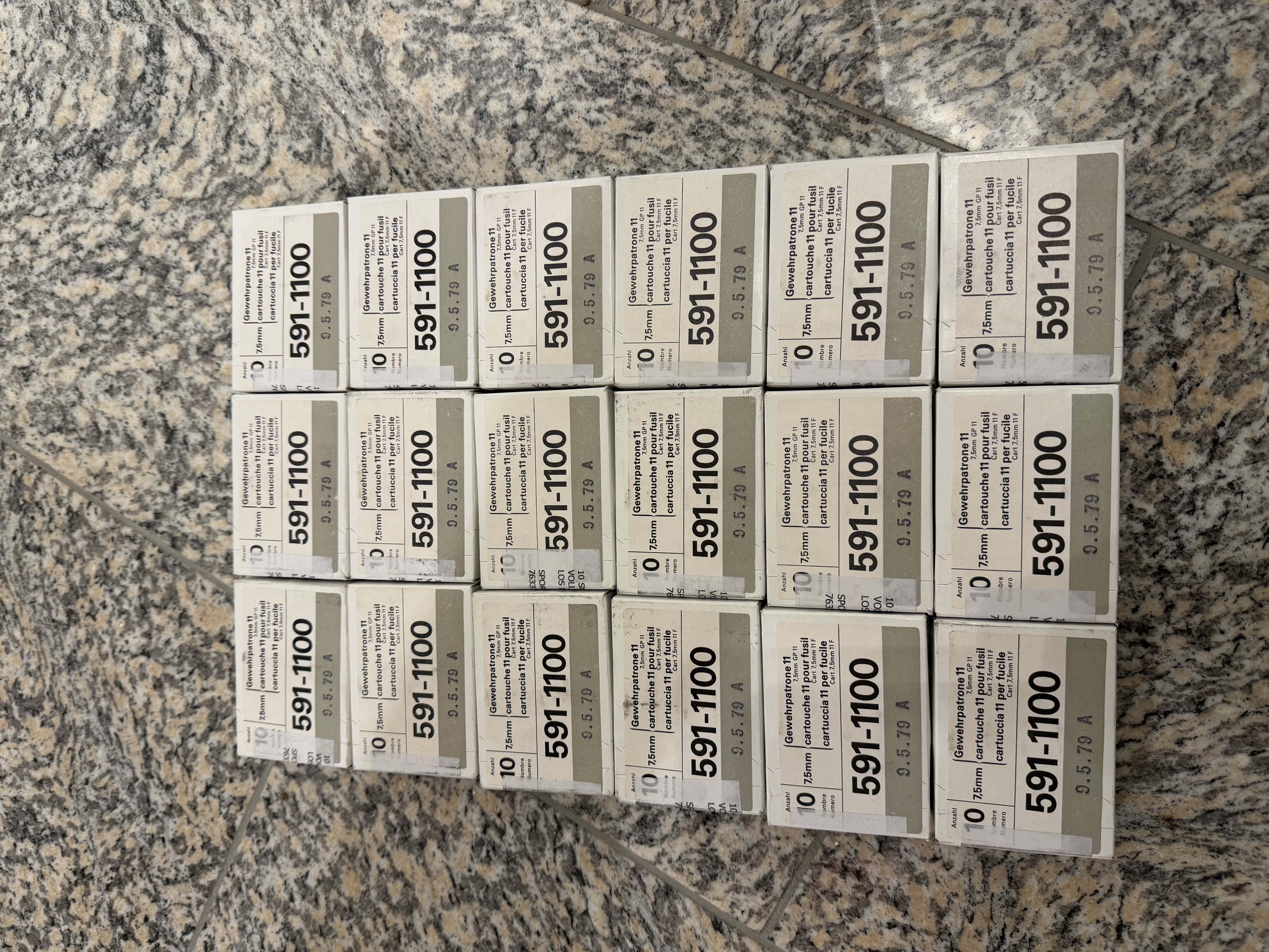 Verkaufe 18 Päckchen a= 10 Stk. der Schweizer Gewehrpatrone GP11