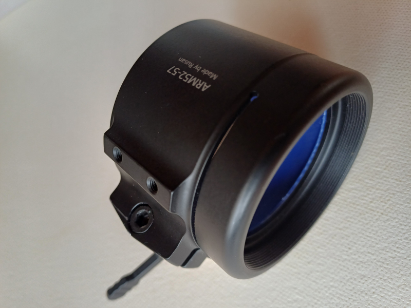Hier gibt es einen Adapter zu Montage von Vorsatzgeräten an Zielfernrohren, Gewinde 52x0,75 mm, Durchmesser 57 mm.